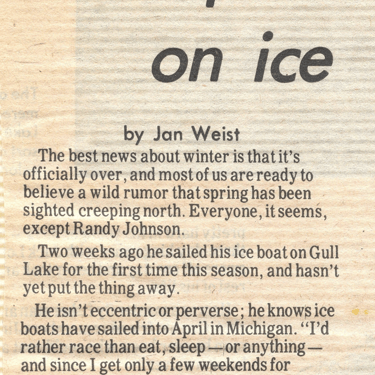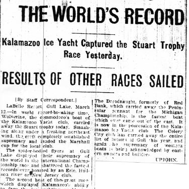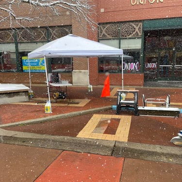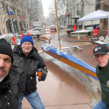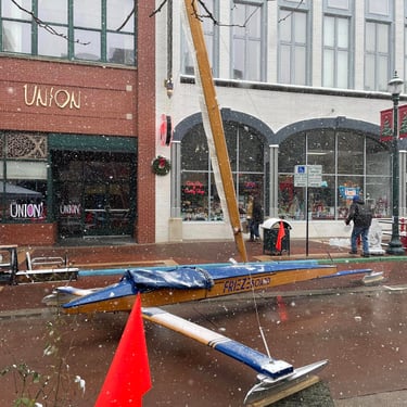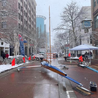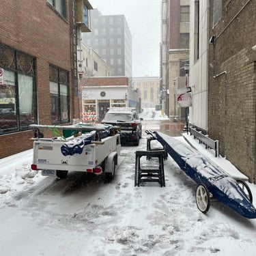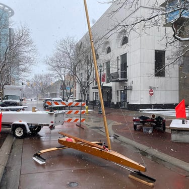 Peter, Gary and Doug came through in downtown Kalamazoo, Michigan on January 13, 2024 to set up a Renegade Iceboat and a DN Iceboat to educate the public on this great sport.